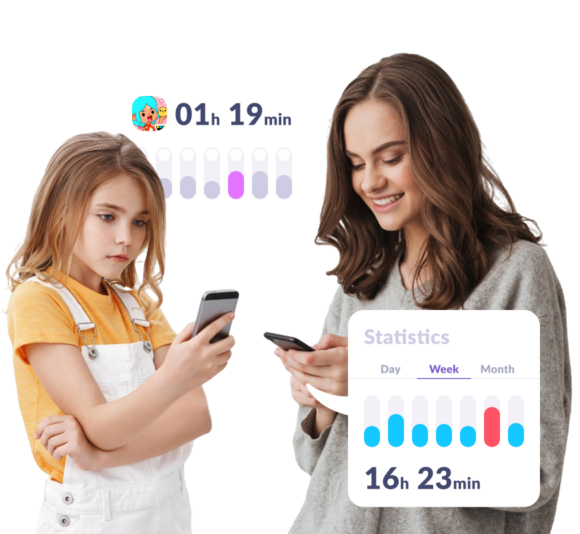 View your child’s screen time in an easy-to-read dashboard, with data for any period — day, week, or month