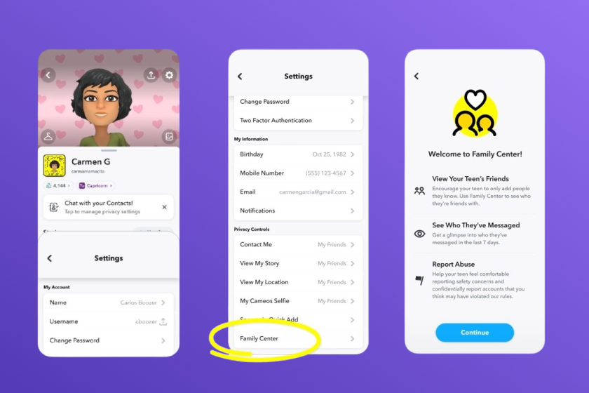 To get started using Snapchat’s Parental Controls, called Family Center, you as the parent will need to download Snapchat on your iPhone or Android device and create your own account and username.