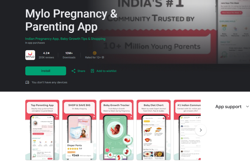 Mylo is a free pregnancy and parenting app that supports users from conception through early childhood. It offers personalized tools like pregnancy trackers, baby growth charts, due date calculators, and a parenting community. Users access expert-verified content, shop for baby products, and capture milestones.