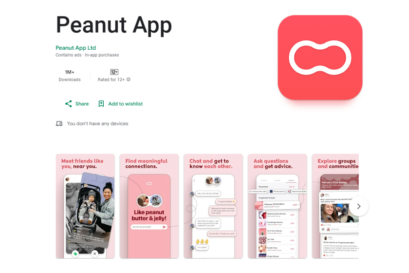 Peanut is a social networking app for women to connect through all life stages—trying to conceive, pregnancy, motherhood, and menopause. It uses swipe-style matching to build friendships and offers community groups, discussion forums, and live audio chats called “Pods.” Created to reduce isolation and foster meaningful support, Peanut provides a safe, women-only space to share experiences, ask questions, and form connections online or in-person.