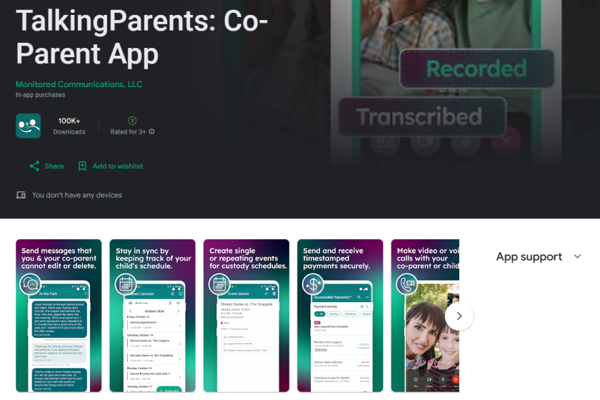 TalkingParents is a co-parenting app that helps ensure transparent, secure, and accountable communication between separated or divorced parents. It offers timestamped messaging, recorded calls, a shared calendar, payment tracking, and unalterable court-admissible records.