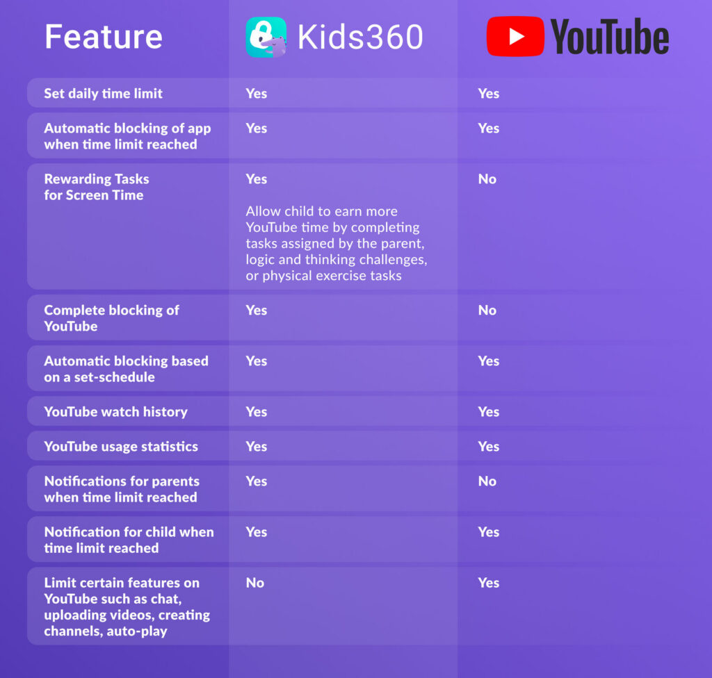 YouTube Parental Control vs Kids360