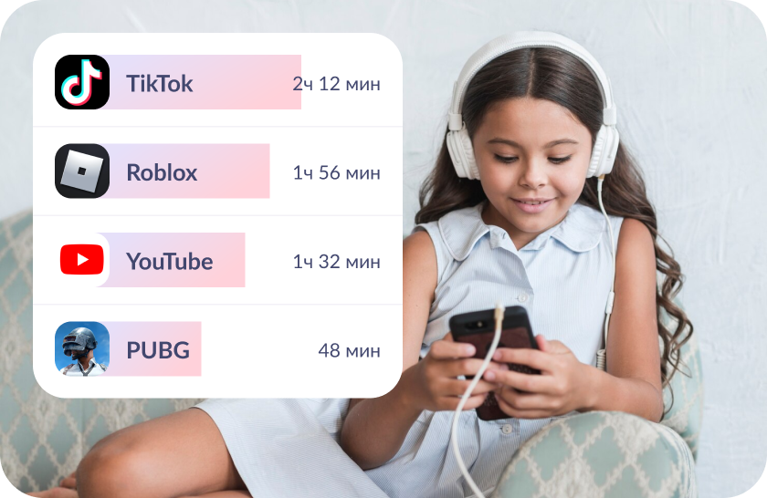 Отслеживайте, в каких приложениях ребенок проводит больше всего времени и на что тратит часы в телефоне
