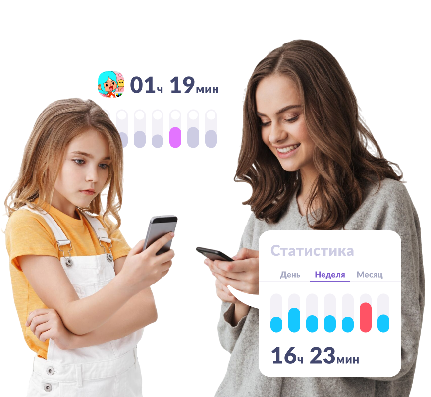Смотрите время, которое ребенок проводит за экраном, в удобном графике. Данные за любой период — день, неделя, месяц